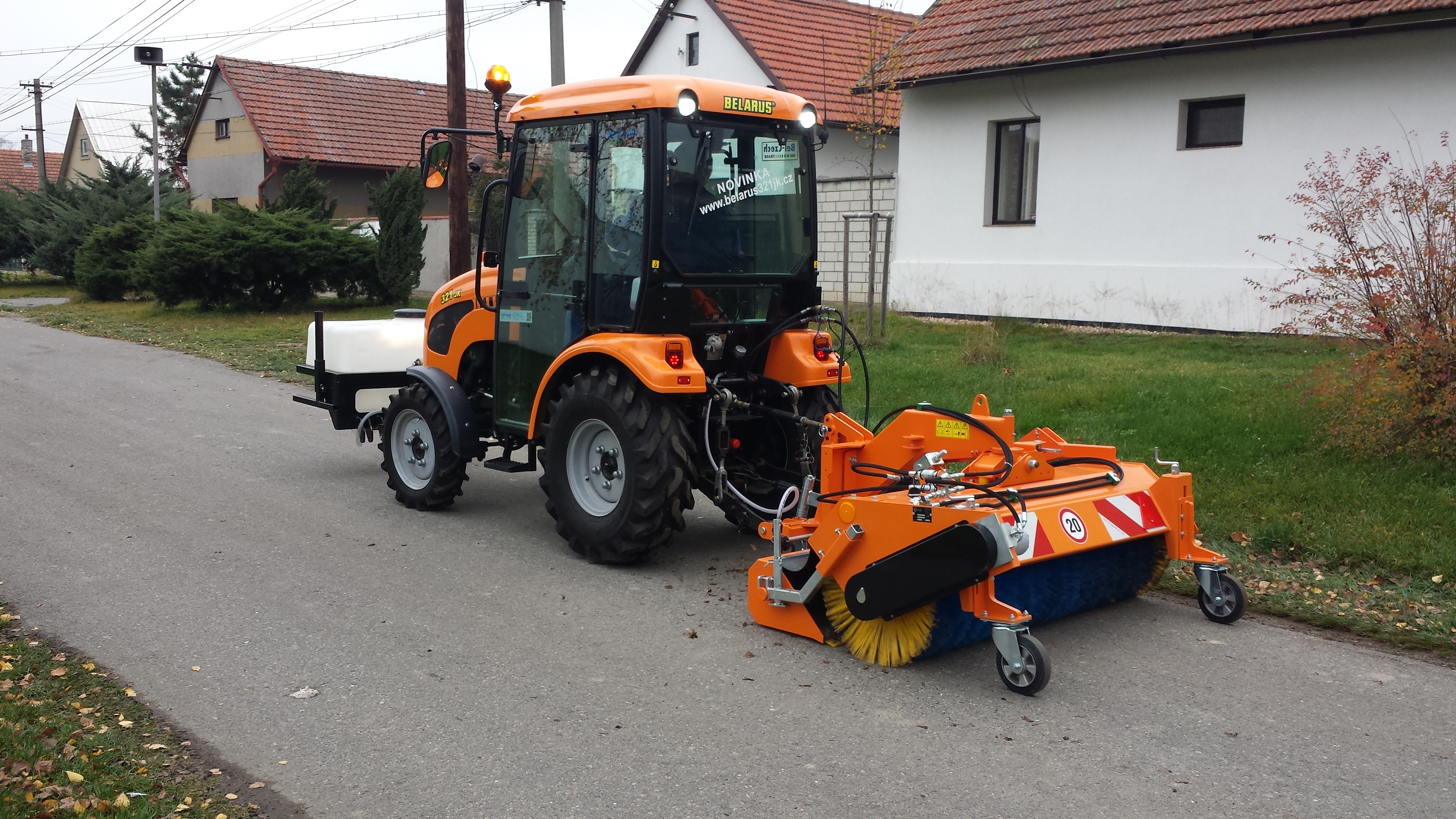 Komunální technika: setava univerzální nosič nářadí Belarus 321 JK, zametací zařízení se sběrovou vanou, přimetacím kartáčem a kropícím zařízením. Široká variabilita uožňuje použití i jednotlivých součástí samostatně, např. zametací kartáč v zimním období pro úklid sněhu.