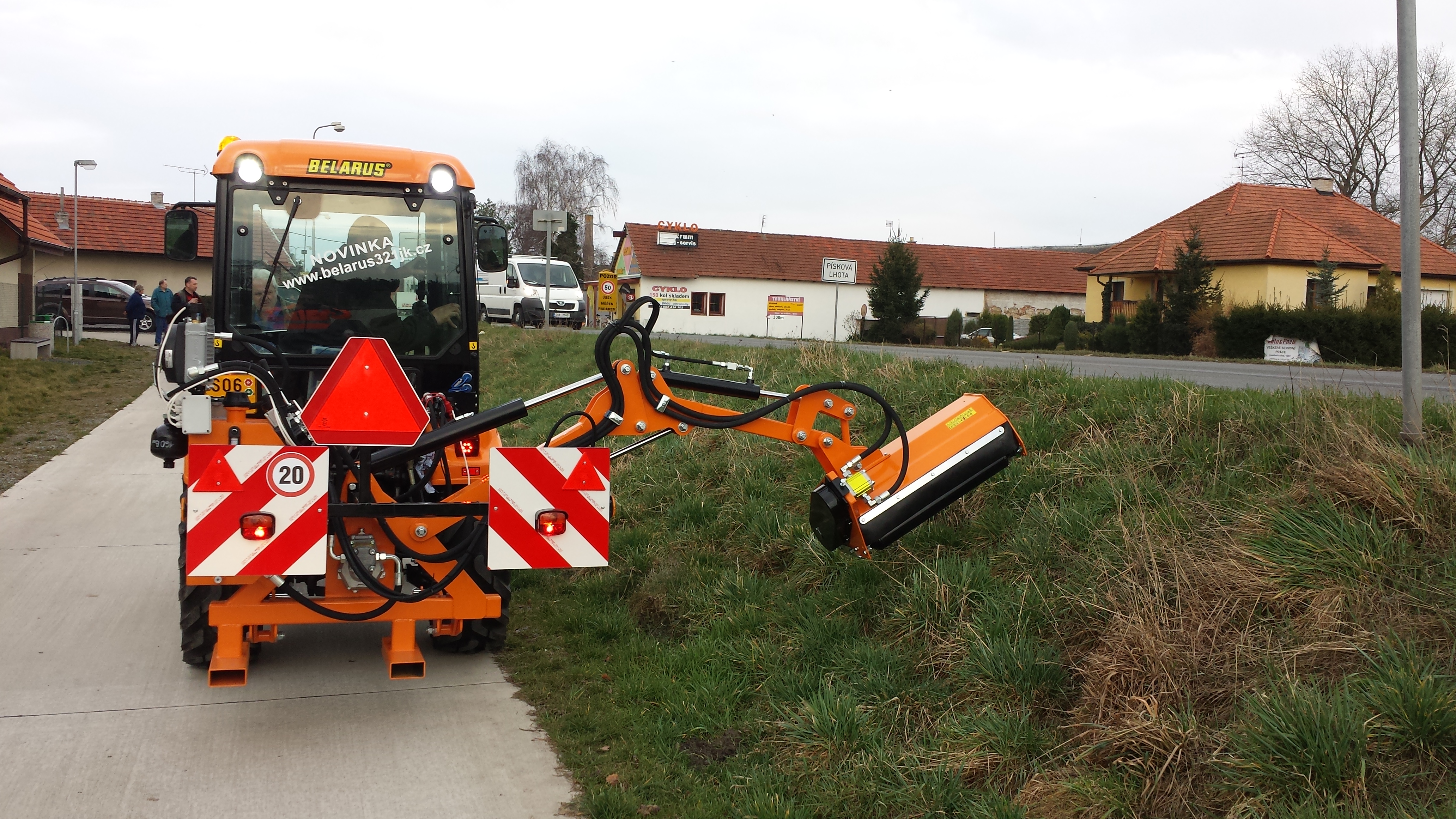 Údržba zeleně a travnatých ploch: sestava univerzální nosič nářadí Belarus 321 JK, ramenná sekačka RSR čelní připojení